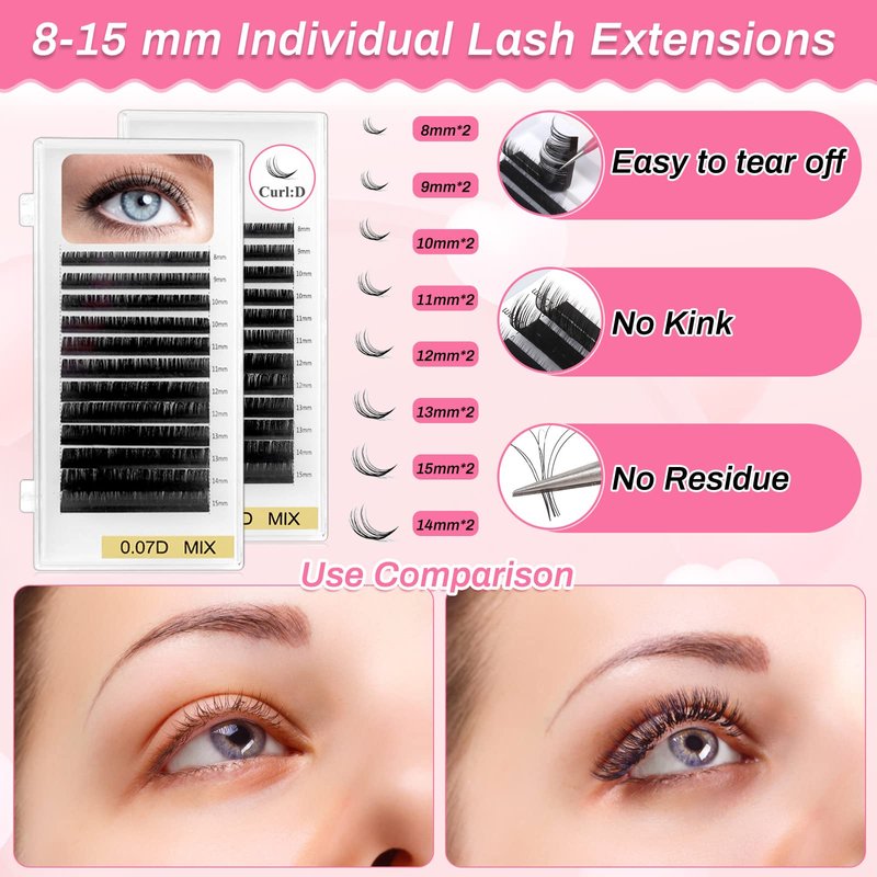 2 boxes eyelash extensions (8 sizes in each package, 0.07D, 8-15mm Length)