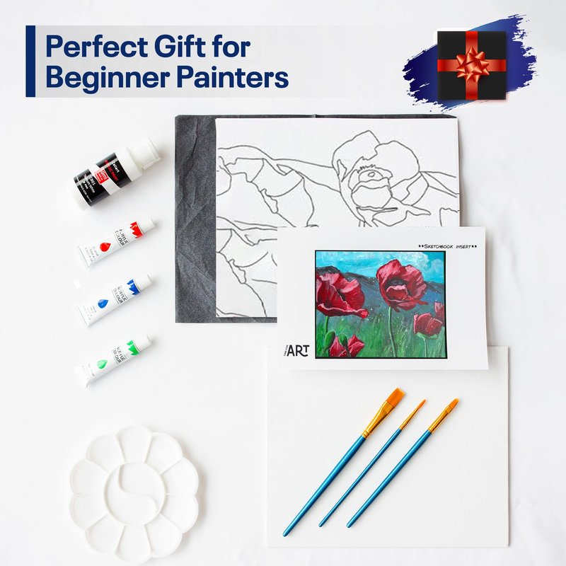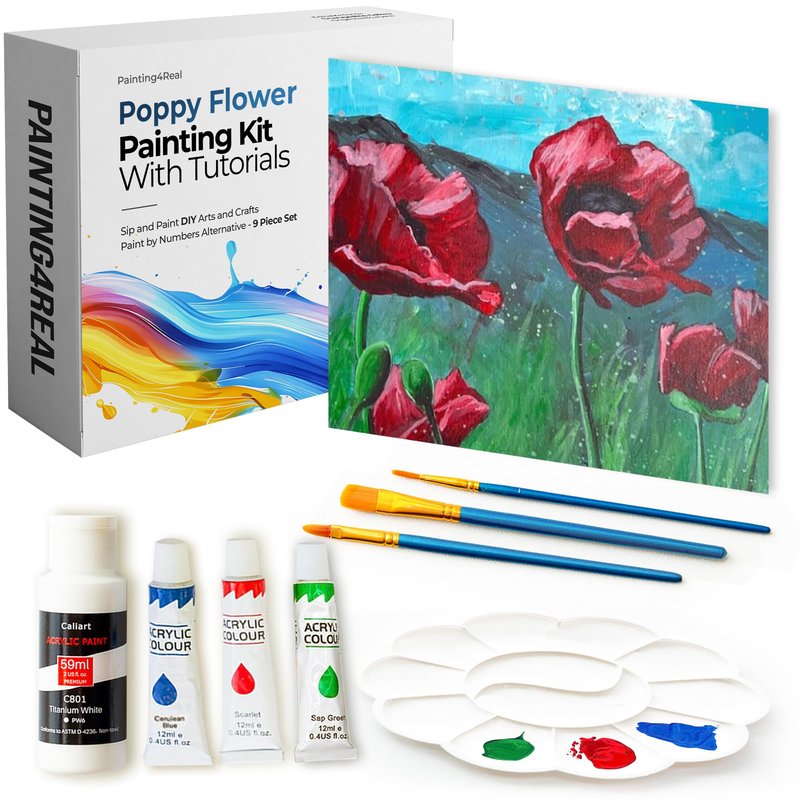 DIY Painting Class Kit for Adults: Learn to Paint These Poppy Flowers with Video Tutorials – How to Paint with Acrylics – Painting & Art Supplies – 9 Piece Acrylic Paint Set