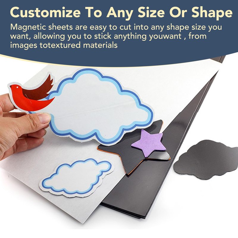- 【Multiple Possibilities】Magnetic sheets with adhesive backing makes it easier to use, the magnet sheets can be conveniently cut into different sizes to perfectly accommodate your pictures / cards.We suggest measuring the size of your needs before trimming. After cutting, peel back the protective sheet, apply what you want, and then stick to any magnetic metal surface.