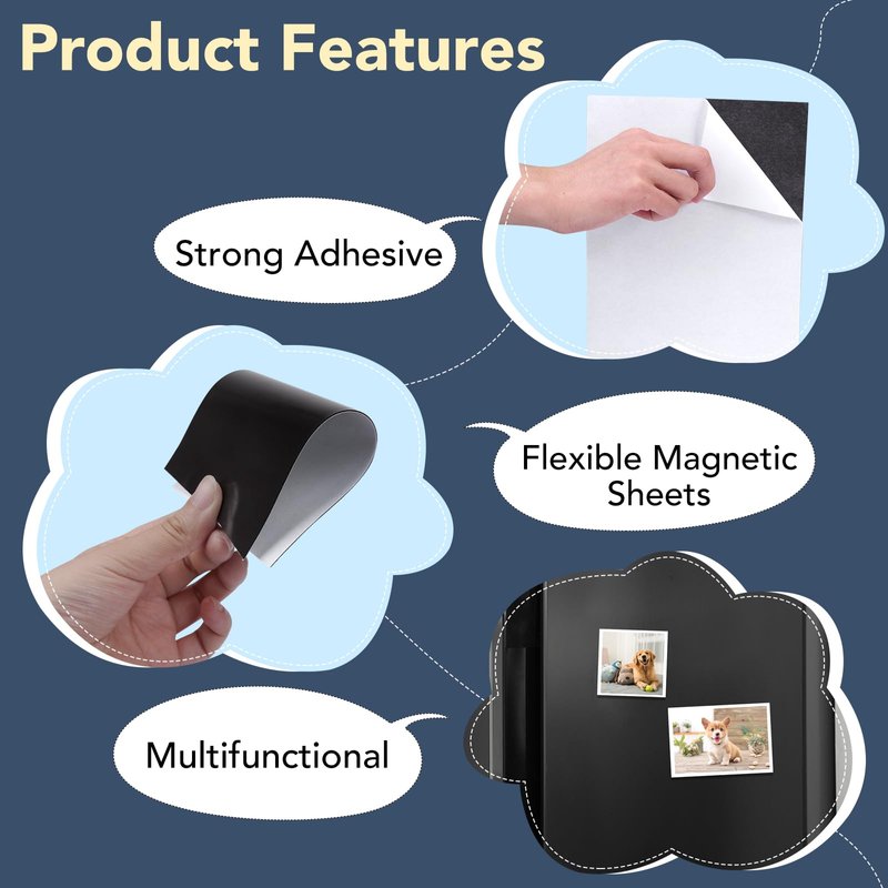 - 【Strong Adhesive】 Package includes 12 adhesive magnetic sheets .Magnet sheets with adhesive is made of premium strong adhesive material.Allowing you to stick anything you want.