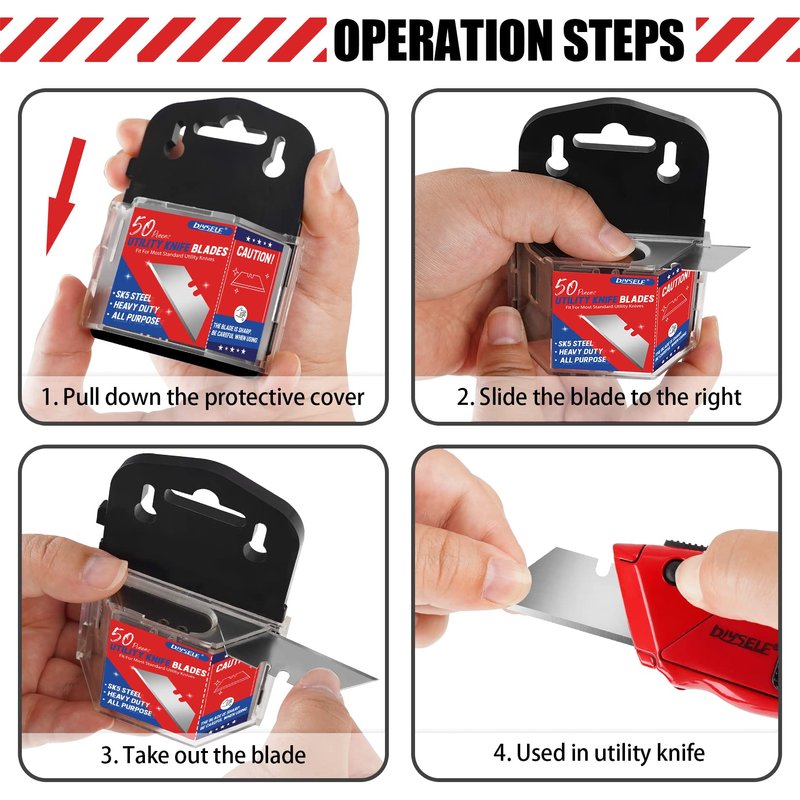 - High Quality Material: The utility blades are made of SK5 alloy steel, which has higher hardness, better wear resistance and longer service life than ordinary blades