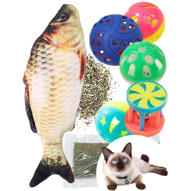 - Complete Cat Toy Set: Includes 5 durable plastic balls, a large fish-shaped catnip toy, and two packs of catnip for endless playtime fun.