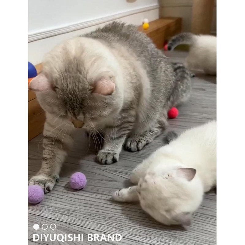- Nine plush balls: Great for playing fetch with owners. Can also be used as room decor. Soft and cuddly kitten toys.