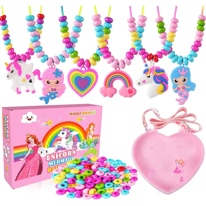 DIZRNOI Jewelry Making Kit for Girls Unicorn Mermaid Charm Necklace Making Supplies Beads Set Birthday DIY Arts and Crafts for Girls