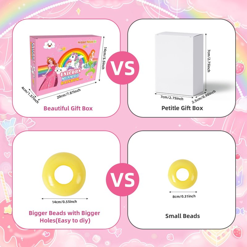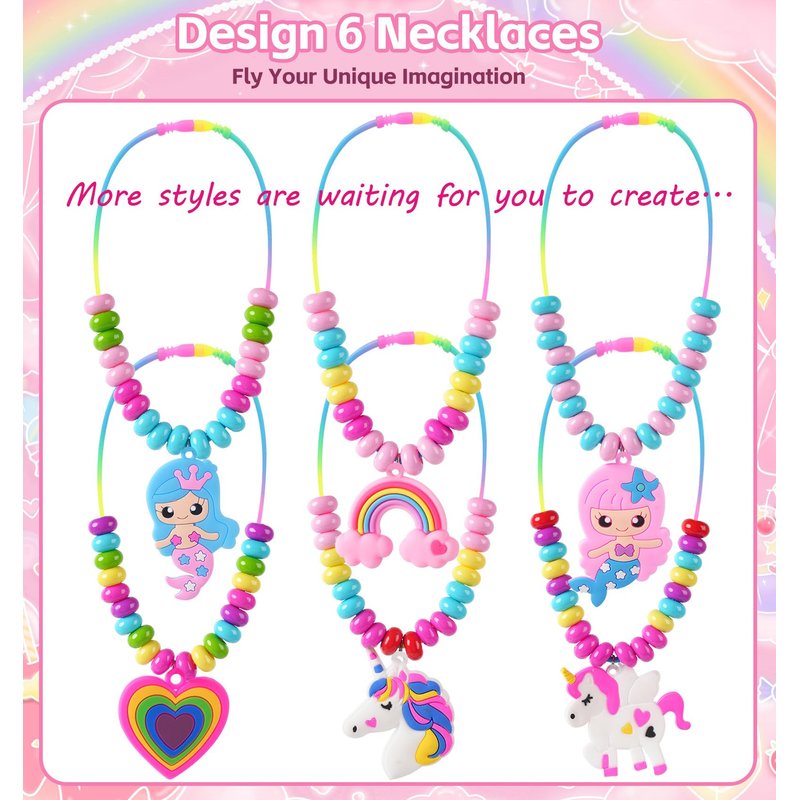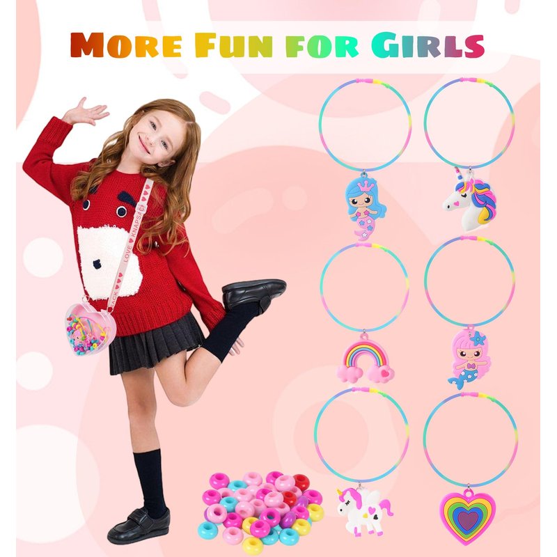 - GREAT VALUE KIT - Comes with 1 delicate jewelry box, 1 portable jewelry box, 6 cute pendant charms, 6 rubber rainbow necklace cords, 120+ round beads. This toys for girls must be a great item for girls who like DIY gorgeous jewelry set