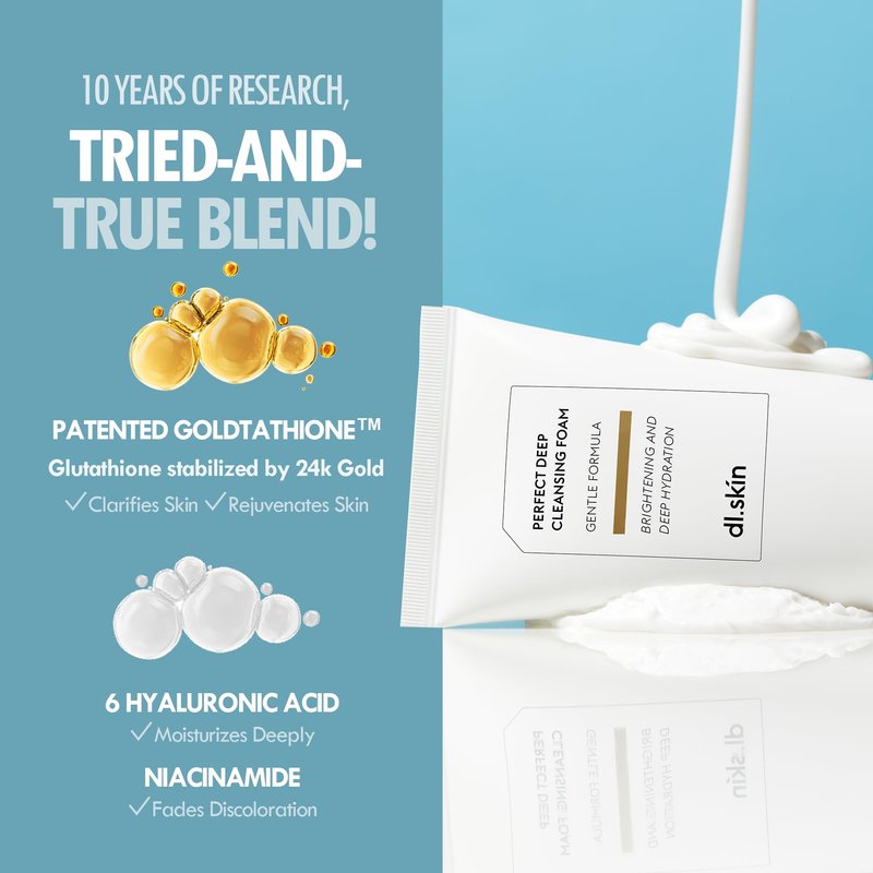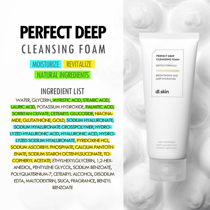 - DEEP FACIAL CLEANSING WASHES. Infused with the potent benefits of Glutathione, DL SKIN’s Perfect Deep Foaming Face Wash invites you to experience a skincare transformation like never before. This Korean face cleanser features a rich formula with a dense viscosity that goes beyond the ordinary, offering pampering without irritation.