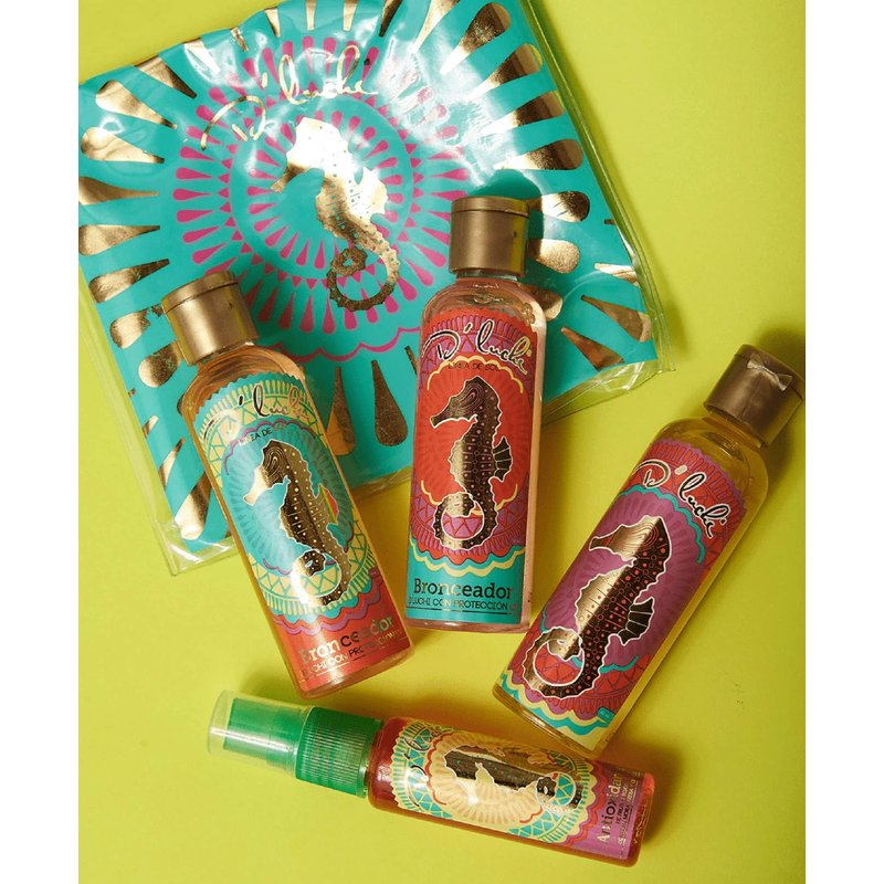 Indulge in the ultimate tanning experience with the D'Luchi Mini Tanning Kit, a carefully curated set of four travel-sized products designed for a healthy, beautiful, and long-lasting golden glow. This must-have tanning kit includes D'Luchi Carrot Tanning Lotion, Coconut Tanning Oil, Almond Regenerator, and Gold Body Lotion. The Carrot Tanning Lotion, rich in beta-carotene, imparts a golden and natural tone to your skin. Our Coconut Tanning Oil, made with organic coconut oil, vitamin E, and collagen, promotes a deep, dark, and natural tan while maintaining the health of your skin. The Almond Regenerator moisturizes your skin, helping to prolong your tan, while the Gold Body Lotion progressively enhances and highlights your tan. The mini-sized products are perfect for travel, ensuring you maintain your glow wherever you go. Our tanning kit is reef-friendly, paraben-free, sulfate-free, and cruelty-free, free from oxybenzone and octinoxate. Use it with a regular sunscreen for complete sun protection. Experience the beauty secrets of Colombia with our expertly crafted tanning products, made with love and care.