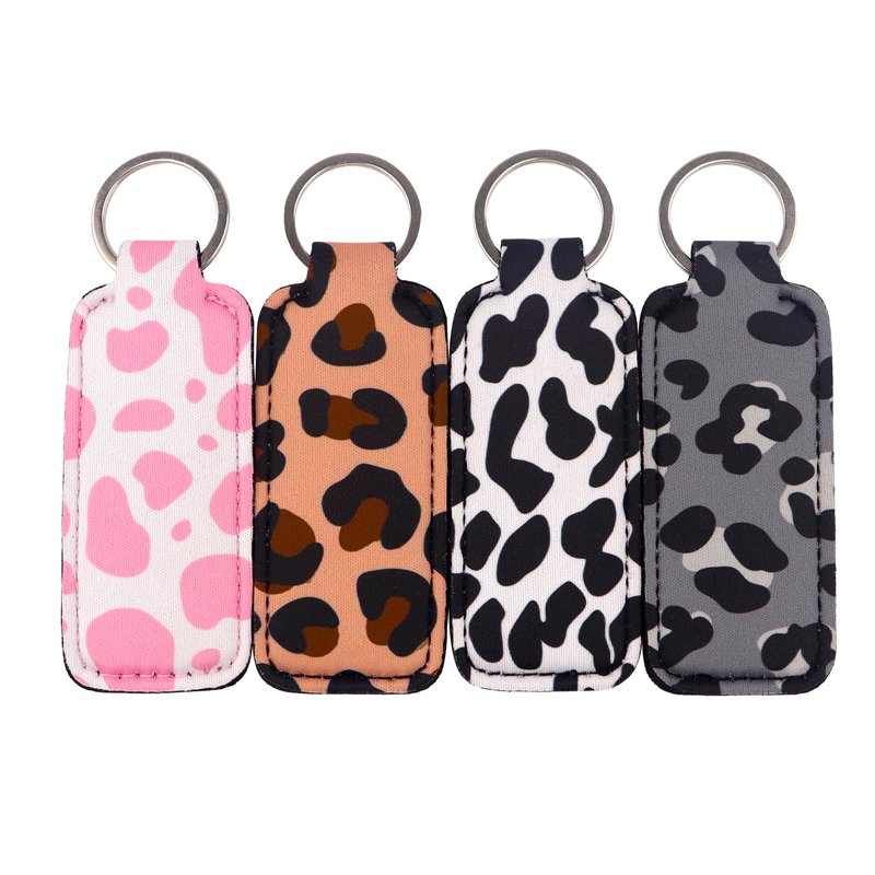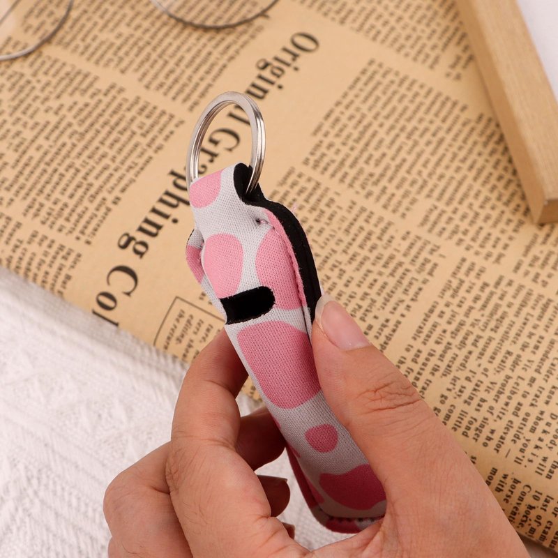 DMLSKY Chapstick Holder Keychain Lip Balm Holder Sleeve Pouch for Mini Lipstick, Cow Print