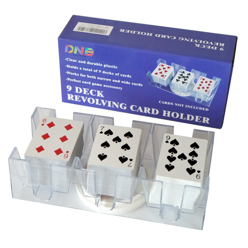 - DNB rotating card holder holds a total of 9 decks of cards, suitable for both narrow and wide cards, you can easily insert and remove cards from the slot.
