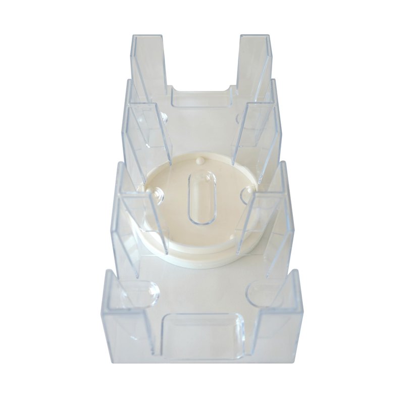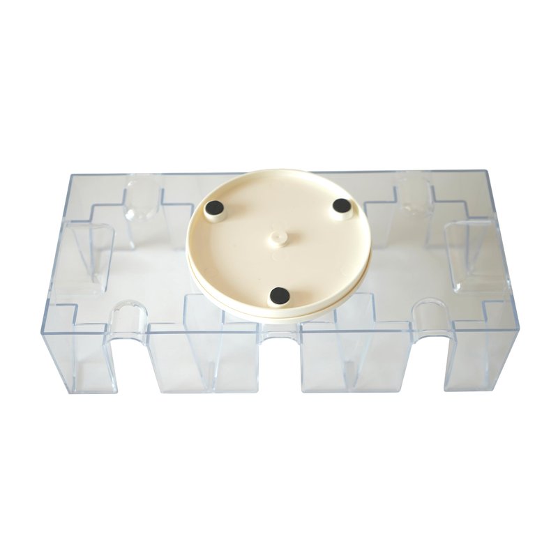 - Made from clear and durable plastic with a white swivel base on which the transparent card tray rotates smoothly in any direction, allowing all players easy access to draw and discard piles from any direction.