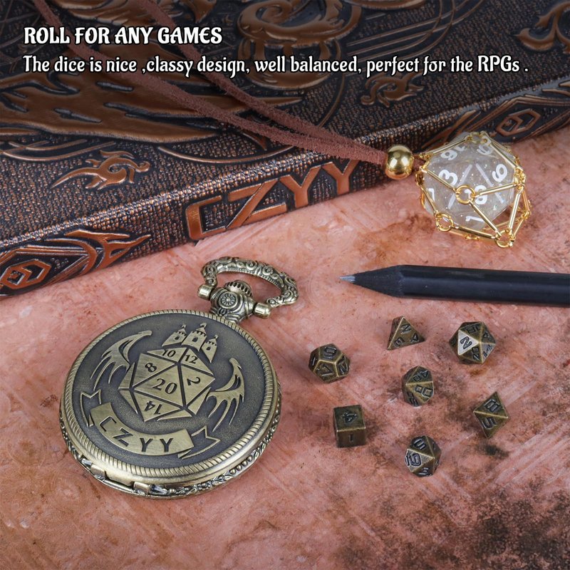- WITH POCKET WATCH SHELL FOR DICE CASE - The standard 7-Die mini polyhedral RPG dice set contains D20, D12, D00(D%), D10, D8, D6 and D4. Comes with a steampunk style pocket watch shell, perfect for storing these tiny dice inside. And it makes a beautiful keychain decoration you will like to shake it and peep the d20 to see how your day is gonna be.