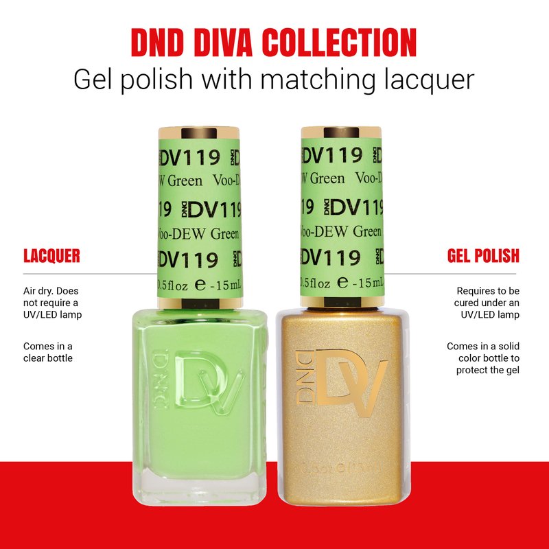 DND Gel Diva Polish Set - 1 each of Gel Polish and Nail Polish, 119 Voo-DEW Green, 0.5 Fl Oz