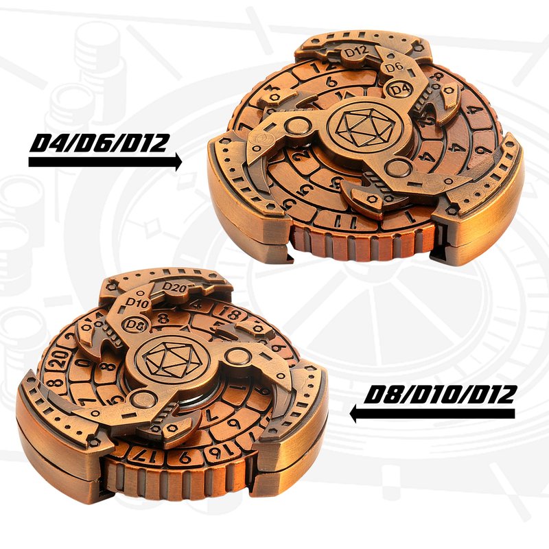 - 7 in 1 Dice: There are 6 different sets of numbers on both sides of the roulette wheel, one side is engraved with D4, D6, and D12, and the other side is engraved with D8, D10, and D12.