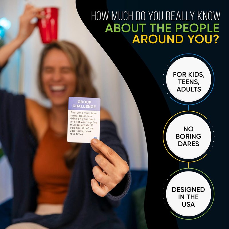 - Break the Ice Instantly: With 250 cards ranging from Challenges, Confessions, Truths, Nostalgia, and More! Our party games for adults make meeting new friends or deepening old ties effortless