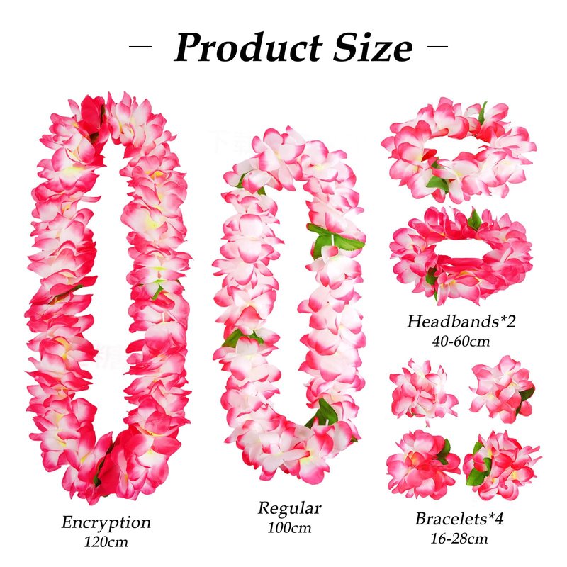 - Multi-Occassion: Bright colors leis flowers included 2* necklace leis, 2*headband leis 4*hand leis; always a great addition to any costume; great for a luau party, a hawaiian themed party, or a back yard caribbean themed party, beach party, birthday party, pool party, grass skirt dance parties, night party, graduation party, wedding, family reunion gathering, photo booth props or other fun summer party favors decorations.