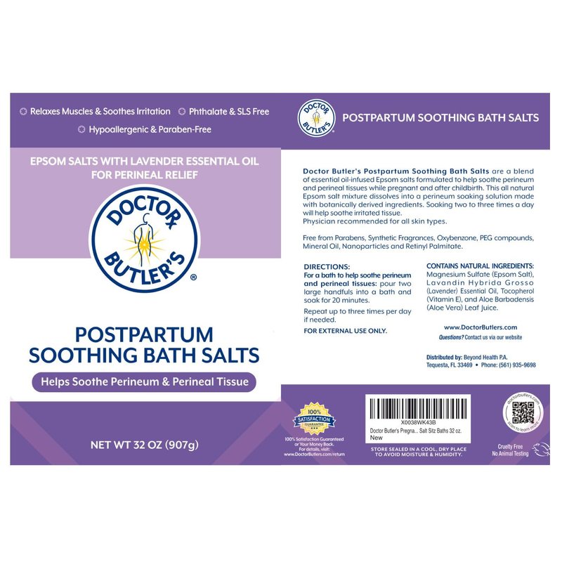 Doctor Butler’s Postpartum Soothing Bath Salts – Epsom Bath Salts for Women for Postpartum Recovery, Hemorrhoids, Discomfort, and Helps Soothe Perineum and Perineal Tissues After Birth (32 oz.)