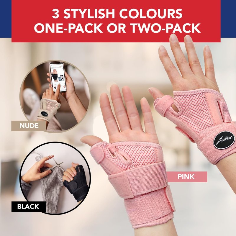 Doctor Developed Thumb Brace for Arthritis/Thumb Splint/Thumb Support for Men & Women - Trigger Thumb Spica Splint - Thumb Splint for Right Hand/Left- FDA Medical Device & Handbook (Pink, Pair)