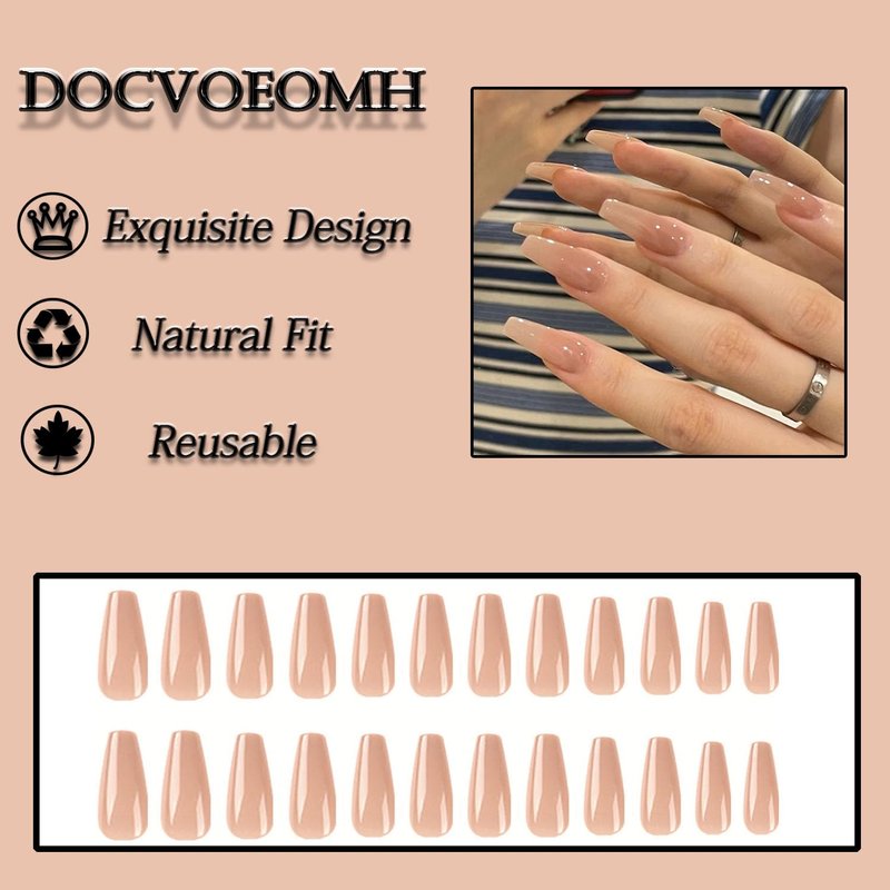 DOCVOEOMH Long Press on Nails Nude Fake Nails Classic Opaque Full Cover Acrylic False Nails for Women Girls 24 PCS