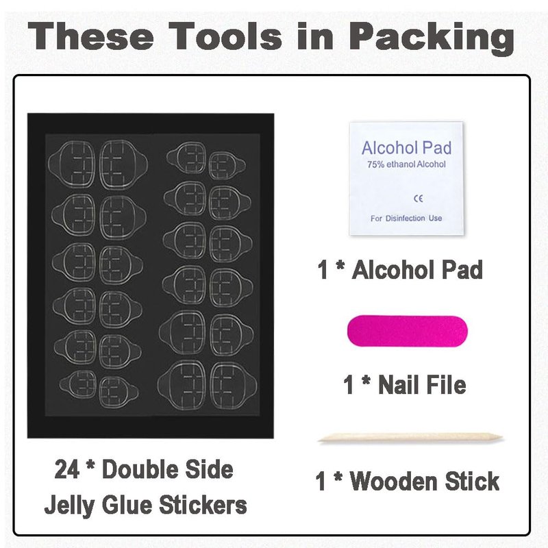 - 【Suggestions】Keep your nails clean and dry before applying glue on nail for women. The jelly stickers make nails reusable and easy to remove, but the durability of jelly gel is limited, so if you need it to last longer, we suggest you use nails glue