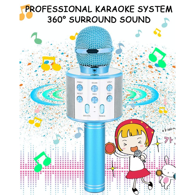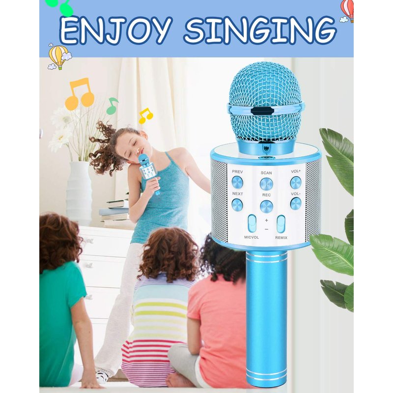 - 𝄞 Magic Sound: The karaoke microphone is interesting toys for kids bringing so much fun! Our karaoke microphone has 4 magical sounds including child voices, tough voices, male voices and honey voices. Let kids enjoy magical singing and glue to this present.