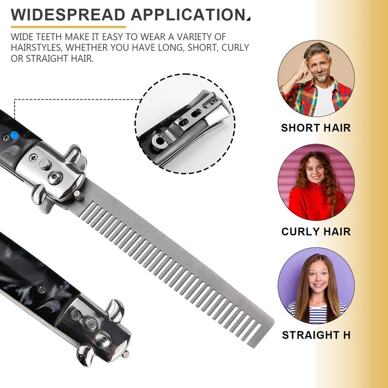 DOERDO Butterfly Comb, Stainless Steel Foldable Pocket Comb Oil Hair Comb Foldable Hairstyling Brush for Beard, Mustache