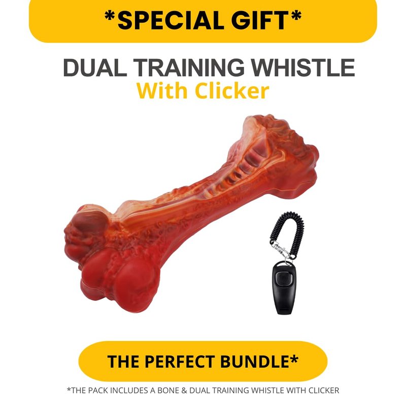 - 【 DOG TRAINING & BEHAVIOR AIDS 】Train your dog effectively and enjoyably with this versatile dog whistle and clicker device. Correct unwanted behaviors and teach basic obedience and tricks with ease. The ultimate tool for your pets! The package includes 1x Realistic Bone and 1x training clicker whistle .