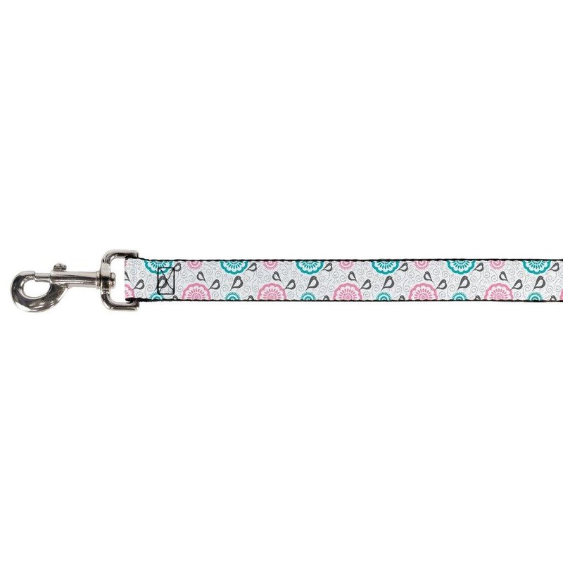 - Style: Buckle-Down Pet Leash - Bird Tapestry White/Gray/Turquoise/Pink - 6 Feet Long - 1.5" Wide