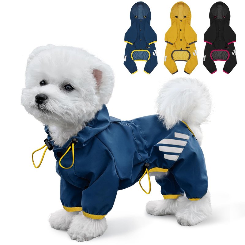 - 💡【Safe Reflective Strips】:This dog rain jacket comes with reflective strips on both sides of the legs, not only add a sense of fashion to the dog raincoat, but also increase a better visibility at night, helps you quickly locate your dog.