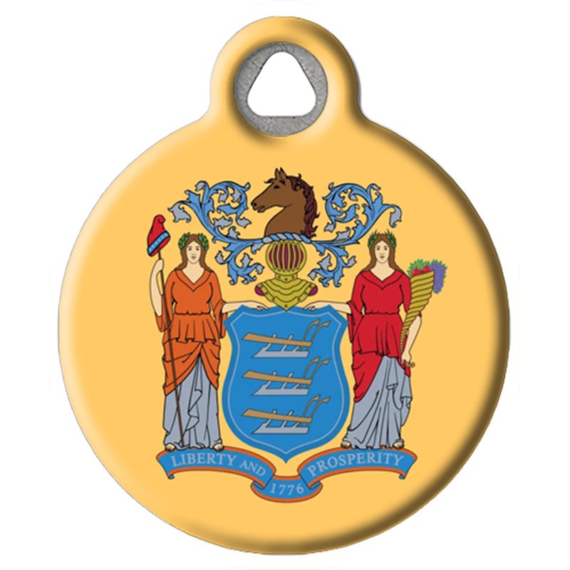 Dog Tag Art New Jersey Flag Personalized Pet ID Tag for Dogs and Cats, Silent Polymer Coated Stainless Steel New Jerseyan Nametag with Customized Identification Information - Small .875" Diameter