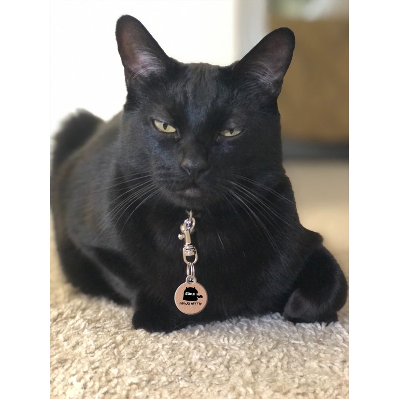 Dog Tag Art Ninja Kitty Personalized Pet ID Tag for Cats, Silent Polymer Coated Stainless Steel Nametag with Customized Identification Information, Small .875 Inch Diameter