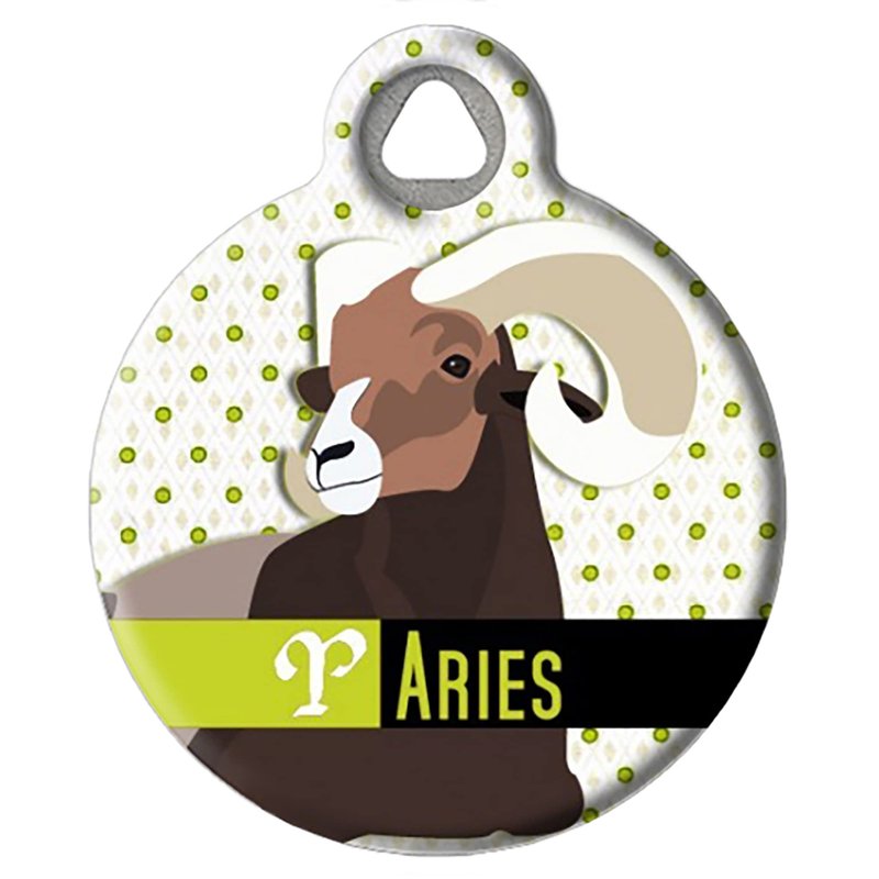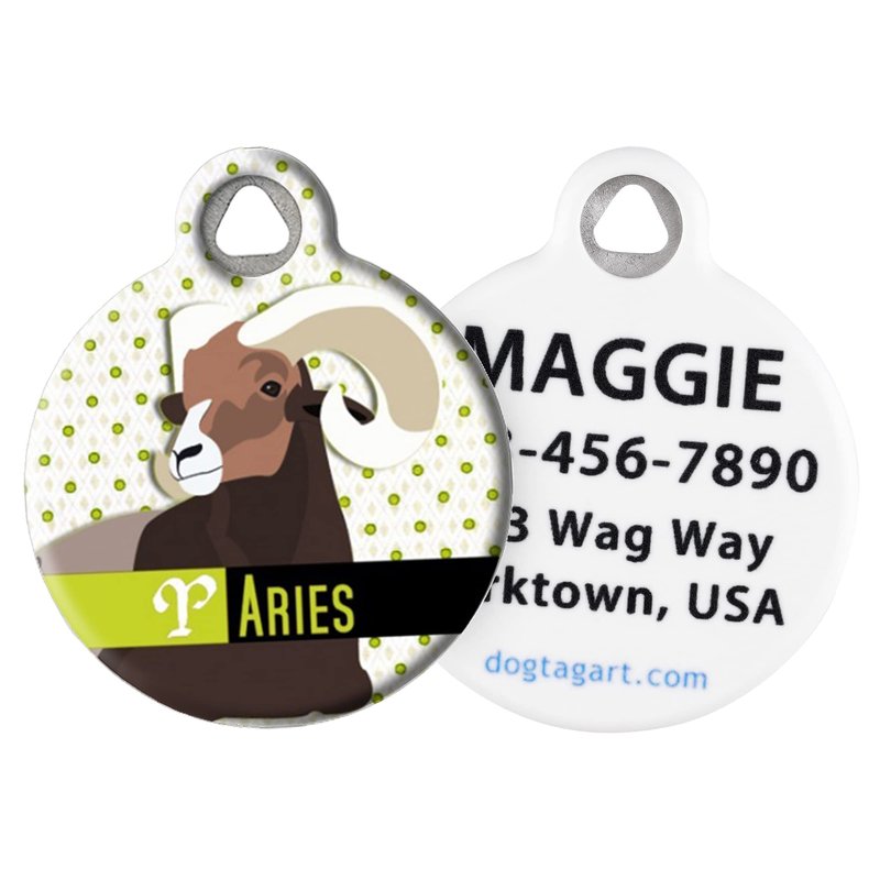Dog Tag Art Vintage Retro Zodiac Custom Pet ID Tag for Dogs and Cats, Personalized Dog Tag with Customized Identification Information, Aries, Small (7/8" Diameter)