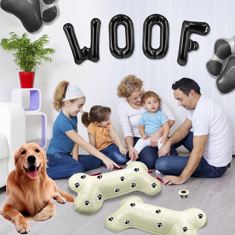 - Cute Dog Theme Design: These puppy birthday decorations are designed into a cute bone and dog paw shape. The W-O-O-F letter balloons create a lovely party atmosphere, easy to light up your puppy-theme party. The package comes with a roll of paw print stickers, you could use the sticker to DIY the balloons or any other as decoration.
