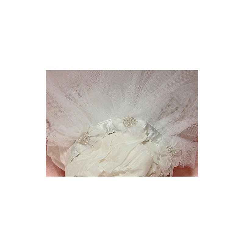 - Veil has a matching white satin head band, also adorned with the chiffon and pearl bead flowers and six layers of high quality Tulle
