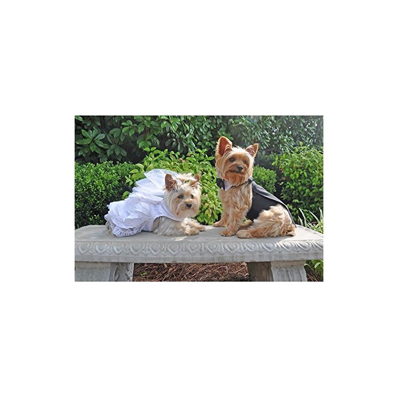- Includes a matching White Satin Leash. Bridal gown set also comes with a matching wedding veil