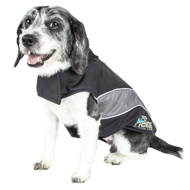 DOGHELIOS 'High Octane' Softshell Neoprene Polar Fleece Reflective Performance Pet Dog Coat Jacket w/Blackshark Technology, X-Small, Black, Grey…