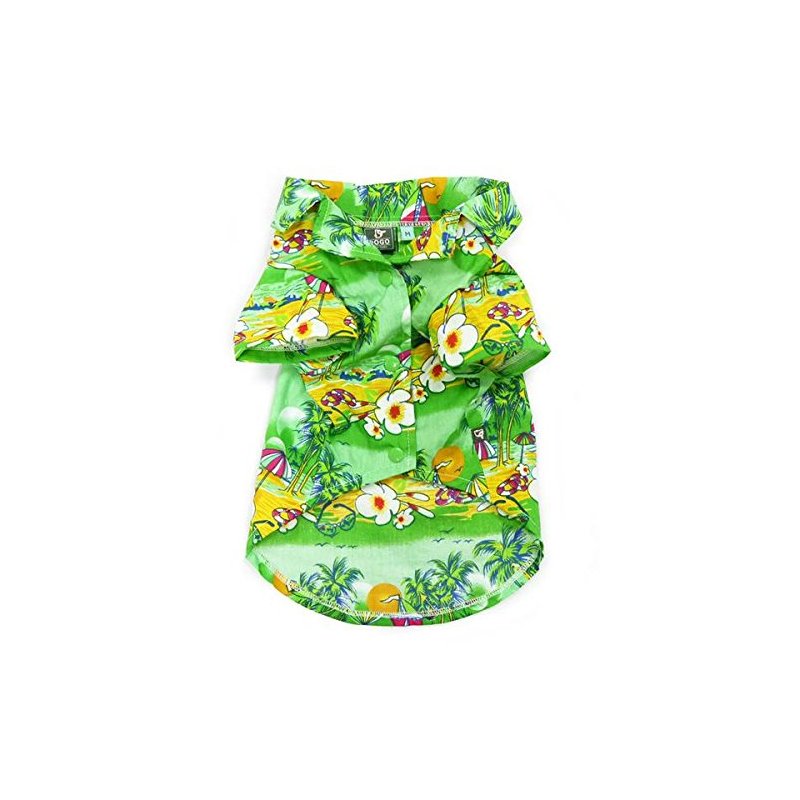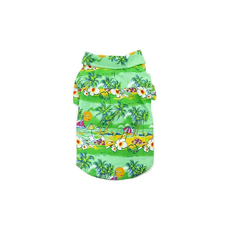 Your dog will be the biggest beach bum with this Tropical Island Dog Shirt. This cute button up Hawaii styled shirt is great for walking down the beach and is 100% cotton. Detailed with a convenient leash hole. Please remember to always round up to the next larger size if your measurement is near or over the maximum range. Size Chart: XXS - Length: 5 - 7.5 inches, Neck: 5.5 - 7.5 inches, Girth: 8.5 - 10.5 inches, XS - Length: 7.5 - 10 inches, Neck: 7.5 - 9.5 inches, Girth: 10.5 - 13 inches, S - Length: 9.5 - 12 inches, Neck: 9 - 11 inches, Girth: 12.5 - 16 inches, M - Length: 11.5 - 14 inches, Neck: 10.5 - 12.5 inches, Girth: 15.5 - 18 inches, L - Length: 13.5 - 16.5 inches, Neck: 12 - 14 inches, Girth: 17.5 - 20.5 inches, XL - Length: 15.5 - 18.5 inches, Neck: 13.5 - 15.5 inches, Girth: 20 - 23 inches.