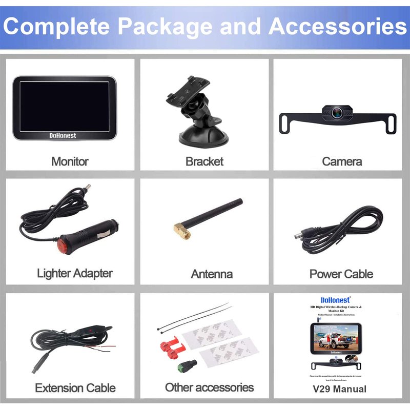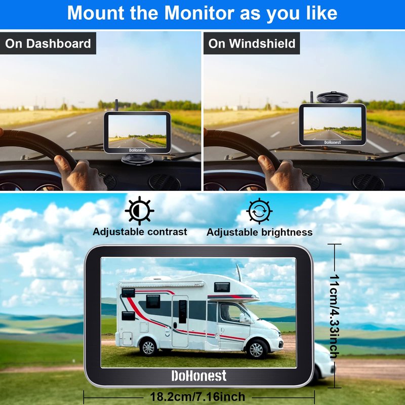 - ★Good Service - The rv backup camera wireless system is suitable with cars,vans,camping cars, trucks, small RVs. DoHonest offers clear user guide (installation video included), 45-day money back guarantee and 2 year warranty. 24 hours after-sales service and Professional technician team is available. If there's any issue, just contact us.