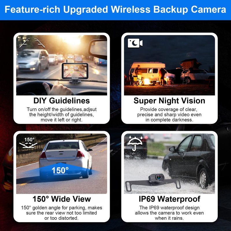 1.The latest digital wireless technology, High signal stability .Digital signals No flicker and interference under 60ft vehicle