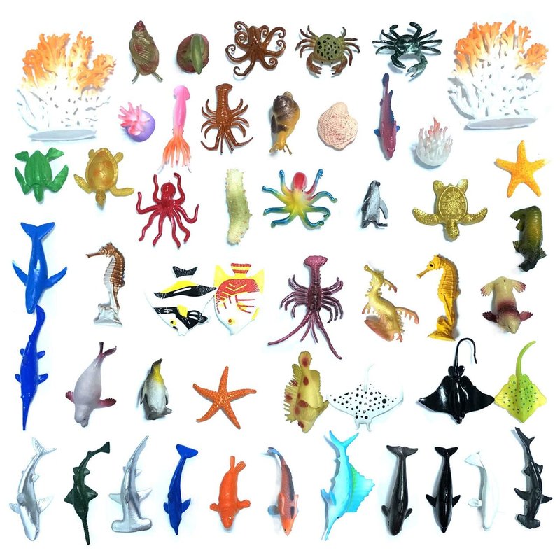 - Realistic Ocean animal toy for child to play and learning, including 48 pack mini sea animal + 2 corals, beautifully detailed and made of SafetyRealistic Ocean animal toy for child to play and learning, including 46 pack mini sea animal + 2 corals + 2 grass, beautifully detailed and made of Safety vinyl plastic! vinyl plastic!