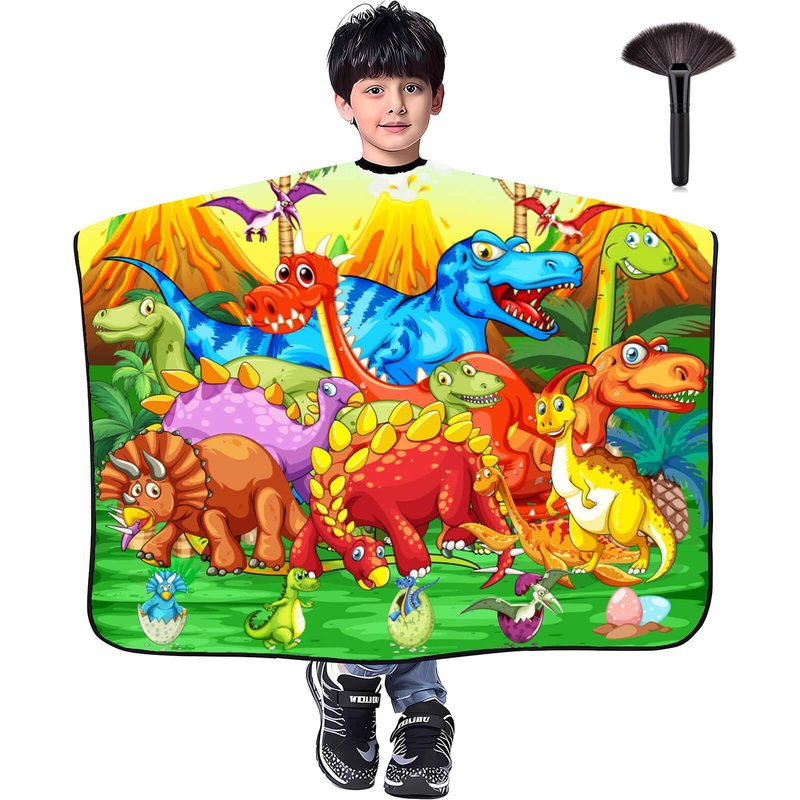 DOKKIA Barber Hair Cutting Cape Kids Children Toddler Boys Girls Hairdressing Salon Styling Cloth Apron Cover Gown with Neck Duster Brush Green Dino Dinosaur World