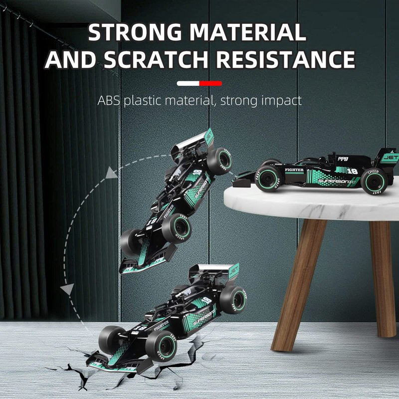 - Fully functional rc car: DOLIVE 1:18 scale F1 stunt racing car is 8.66x4.13x1.97 inches and can move forward, backward, rotate, drift, and turn left and right. It has a maximum speed of 6mph and equip with a wireless remote control, water bottle.