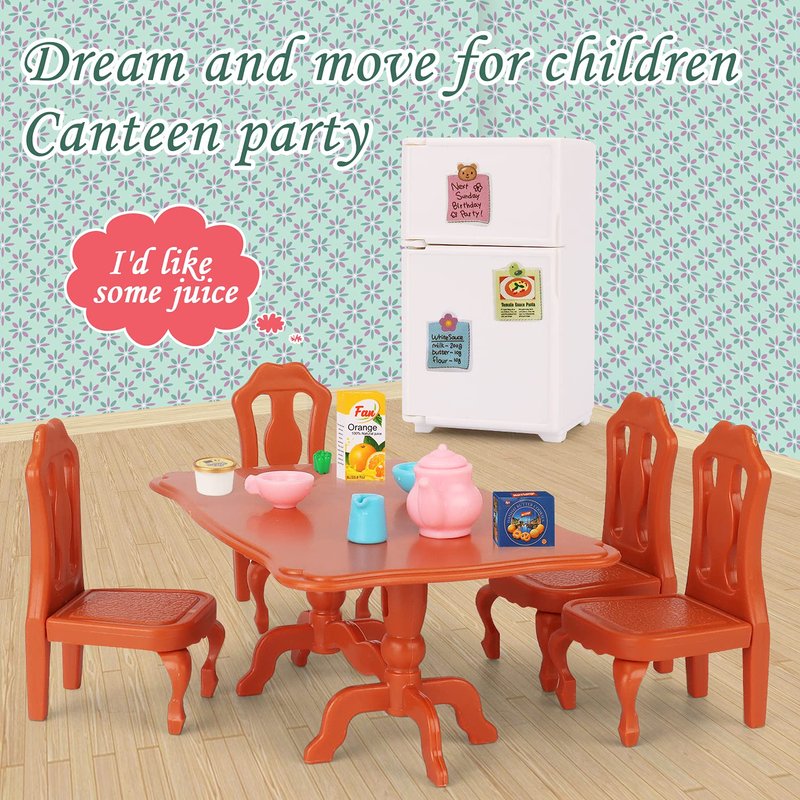 Dollhouse Furniture Set for Kids Toys Miniature Doll House Accessories Pretend Play Toys for Boys Girls & Toddlers Age 3+ with The Dining Room