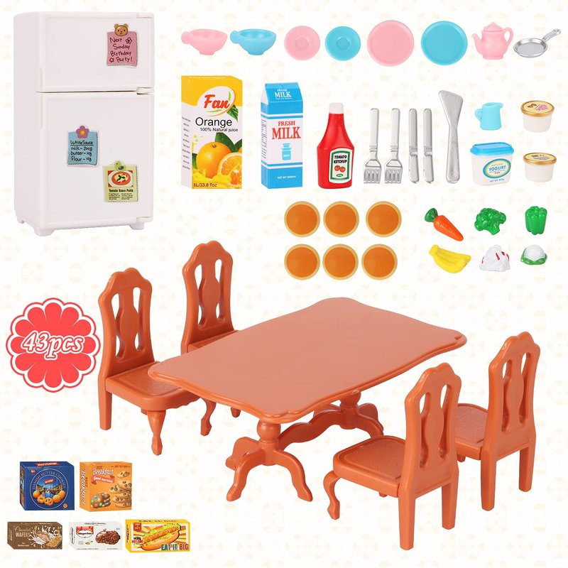 Dollhouse Furniture Set for Kids Toys Miniature Doll House Accessories Pretend Play Toys for Boys Girls with The dining room