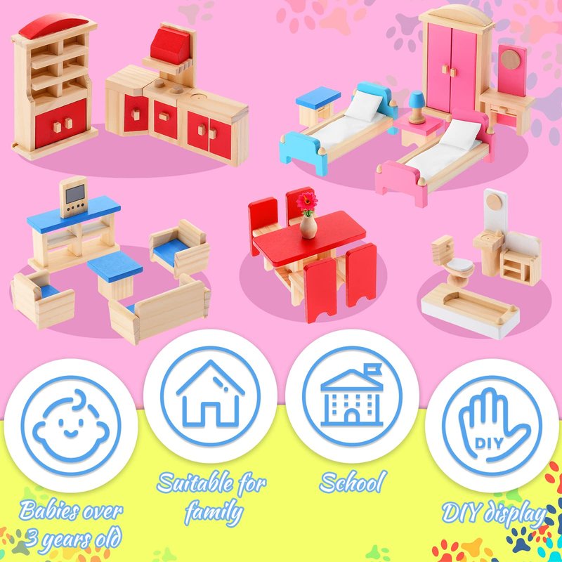 - Exquisite gift: these colorful wooden dolls house furniture are well packed in exquisite boxes, which are suitable as novel gifts for your little boys and girls on birthdays, parties, Easter, Children's Day, Christmas, New Year and other occasions, allowing them to decorate their dream dollhouse