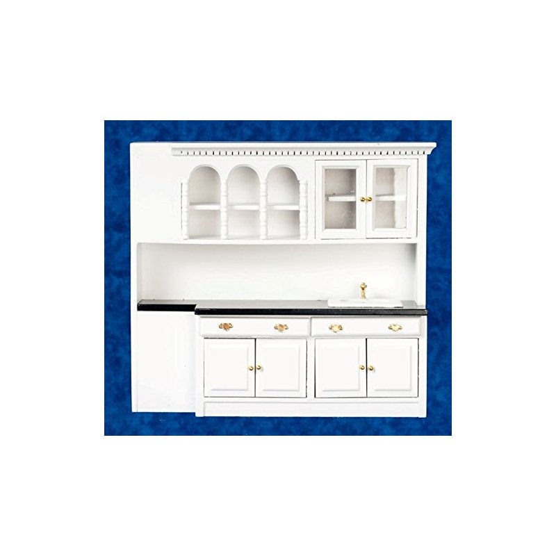 Dollhouse Miniature Kitchen Sink, Counter and Cupboards, White #T5297