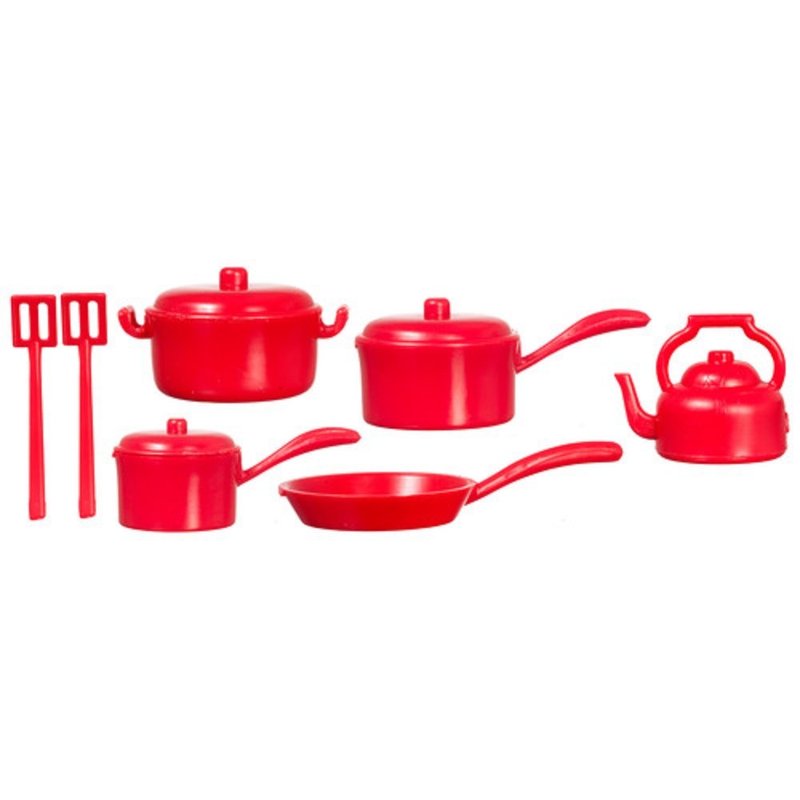 DOLLHOUSE MINIATURES 10 PC RED KITCHENWARE SET #G6208