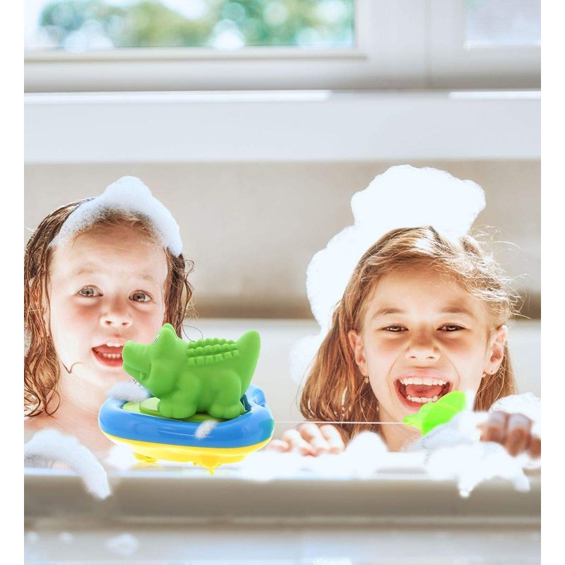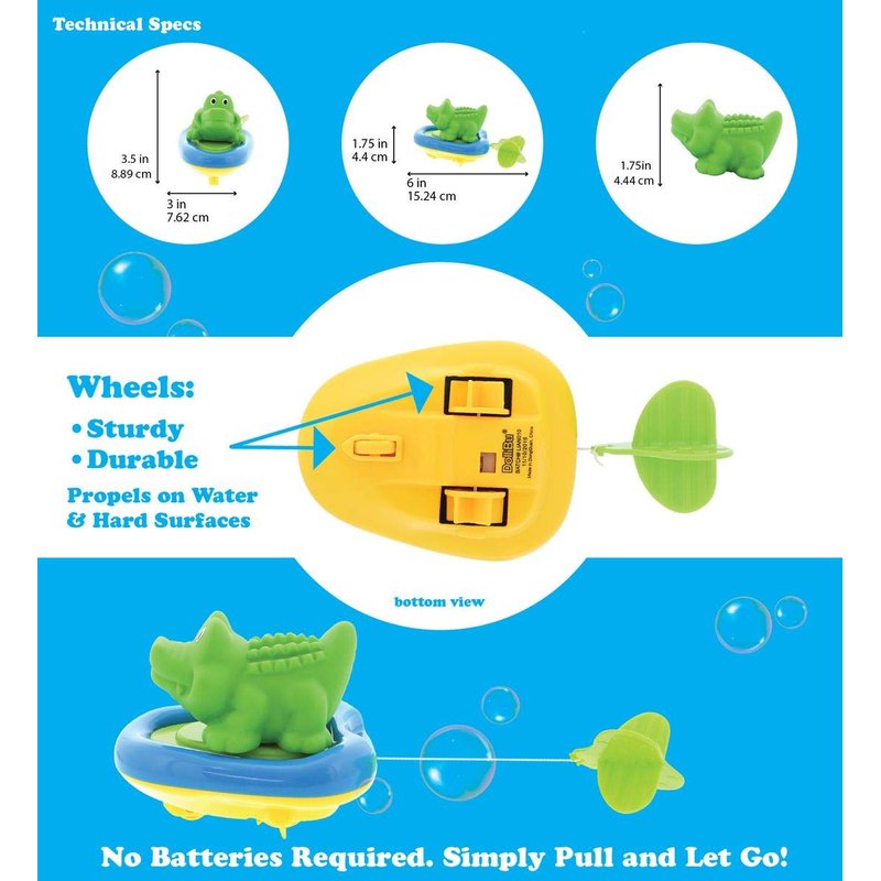 - 3 STIMULATING PLAYABLE MODES: Make bathtub time a splash with the Dollibu Alligator Bath Buddy Boat Racer. Simply pull the propeller string to wind up wheels, set it down, and watch it speed on land or water. Race against friends in the pool and the living room floor. Need a pit-stop? Let kids imagine the tub as the ocean, take the Alligator off its boat, and enjoy finger puppet play! Boat racers are fast water toys that will keep kids busy for hours while providing more than one way to play.