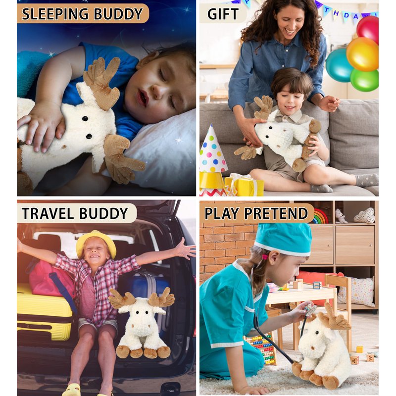 - IDEAL USE FOR STUFFED MOOSE PLUSH ANIMAL TOY – The fancy moose toy will make a great addition to a kid’s plush collection while couples can express their love by surprising their better half with a unique plush. Stuffed animals develop children’s social skills, speech and creativity when during imaginative playtime. The stuffed moose plush will be your little one’s huggable plush doll best friend when playing, traveling and learning.