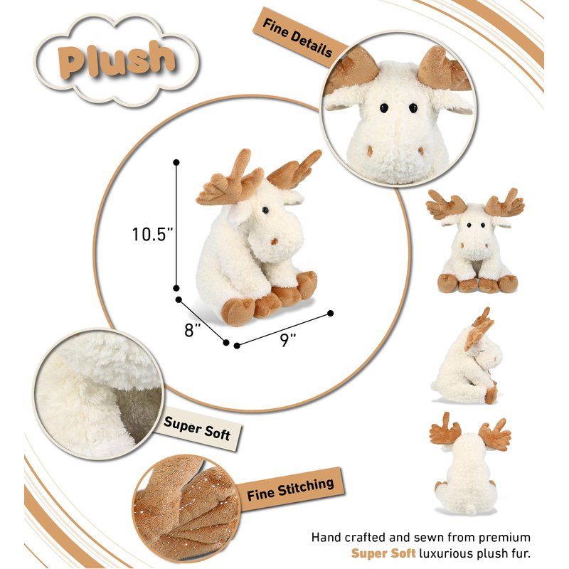 - INCLUDED WITH THE PURCHASE OF ADORABLE CUTE MOOSE PLUSH – Includes 1 DolliBu Fancy Moose Super Soft Plush decorated with realistic features of cute moose. The moose's body is made of soft white-colored fabric that makes the plush perfect for cuddles and snuggles. The moose plush toy features details like its characteristic antlers. The moose’s eyes make the critter so charming. This cute plush toy buddy measures 9LX8WX10.5H inches.