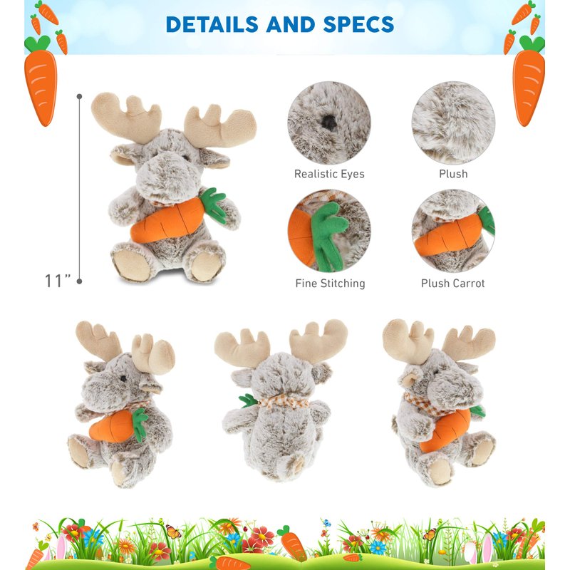 DolliBu Happy Easter Super Soft Plush Sitting Moose with Carrot - Cute Stuffed Animals with Carrot Plush Toy, Perfect Easter Holiday Surprise Gift - 11" Inch